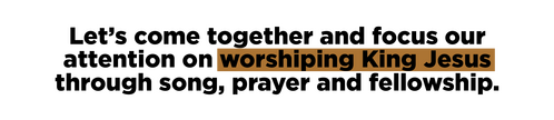 Let's worship together and unite around our Hope, Jesus. Bring your friends and family, and come expectant. We can't wait to see what God will do in our hearts as we honor and glorify His name.